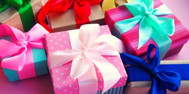 Give your gifts that extra special touch by allowing F R I L L S to custom wrap them for you. We have a wide variety of papers and all the trimmings. Your gifts will draw a smile even before they are opened!